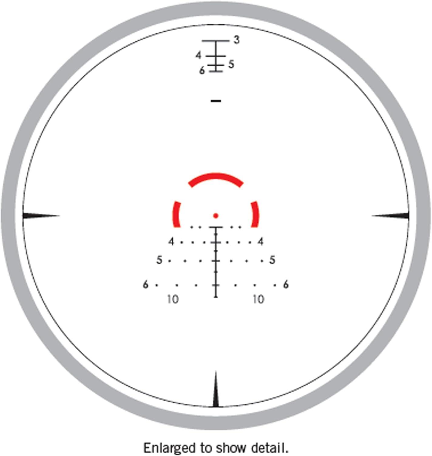An illuminated BDC3 reticle for fast, accurate short- to mid-range target engagements. Use the ranging feature at the top of the reticle to range a silhouette target up to 600 yards.